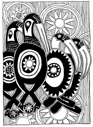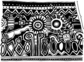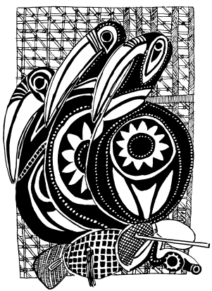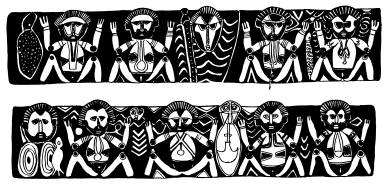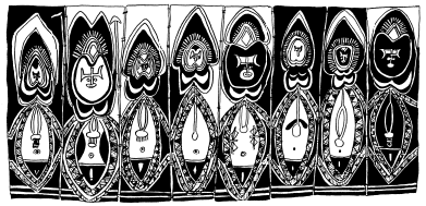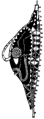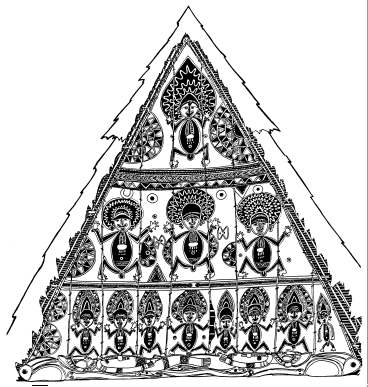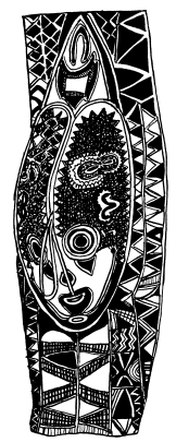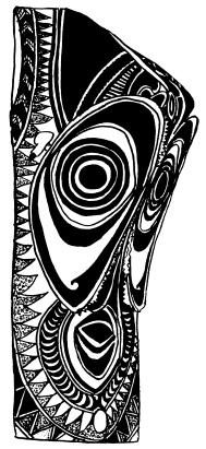 Lintel (tikit) on the Maprik courthouse, central Maprik. Ruff drawing from field notes of1977-79. |