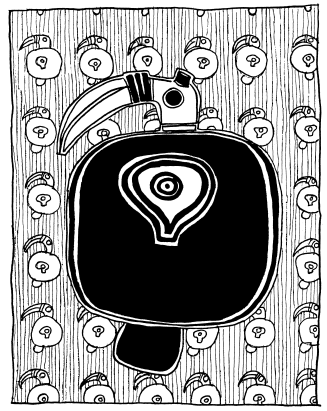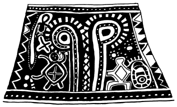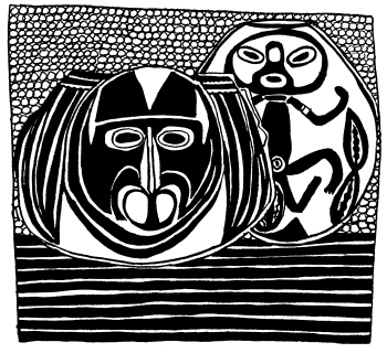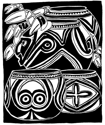 Enlarged motif from Wosera ceremonial pots, collected in 1974. Women constructed the pots using the coil method, and men later applied ornamentation and paint embellishments. |