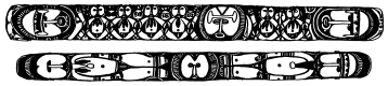 Tikit (lintel) of the ceremonial haus at Aupik, North Maprik. Note that the top section of the drawing is the left end of lintel and the bottom section is the right half, as an observer stands facing the ceremonial haus. Ruff drawing from field notes of 1978. |