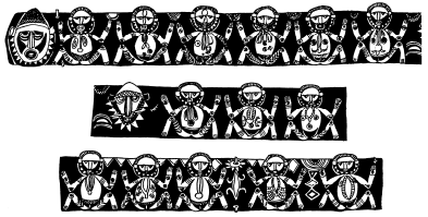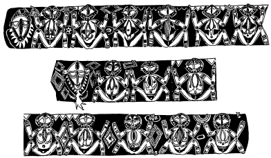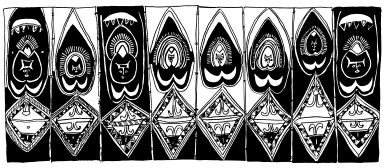 Enlarged details of a lintel from the small ceremonial house created by Wosera area men at the Maprik Cultural Centre, 1975-76. The building is no longer in existence. Ruff drawing from field notes of 1977 and 1978. |