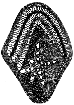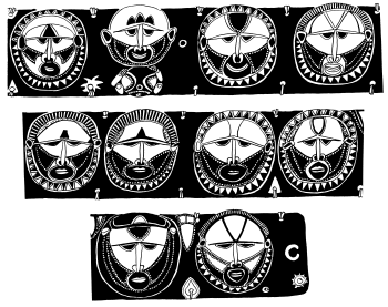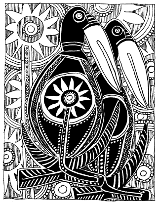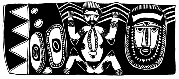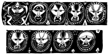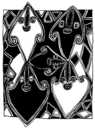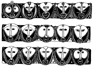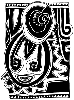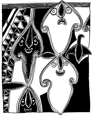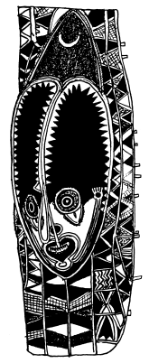 Enlarged detail from tikit (lintel) of ceremonial haus at Ami school, north Maprik. Ruff drawing from field notes of 1978. |