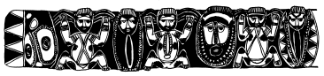 Tikit (lintel) from a small ceremonial haus constructed in 1975, at the Maprik Cultural Centre. The alternating male/female figures on the carving were placed under a Yangoru style painted facade. Note that the top section of the drawing on this page is the left third of the lintel; one figure from the right is duplicated on the centre panel (the tikit's centre section); and the bottom is the right third of the tikit - again one figure is repeated from the right end of the middle panel. All are viewed as an observer stands facing the ceremonial haus. |