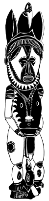 Stone-adzed figure called Bani, from Ndunyinggi hamlet, Kalabu village, Maprik. Carved in the style of 1860. Carvings in this style were not made after 1920, and no other examples of this style remain in PNG. Kalabu villagers indicate that the figure was made in the village of Suambigum. Initiated men of related clans from Kuminibus, Waigakum, Lonem and Kalabu villages, come once a year to "gaze upon its face". The carving is owned by the Luimogrin clan, and is designated National Cultural Property by the National Museum. Ruff drawing following a 1980 field survey. |