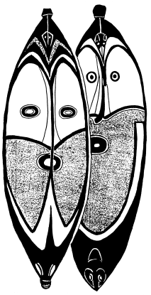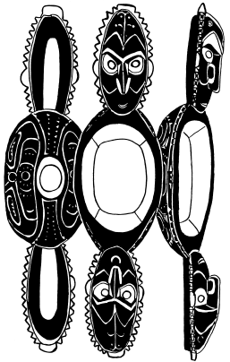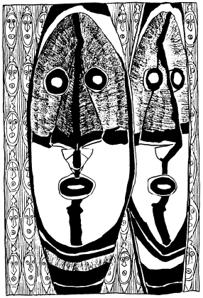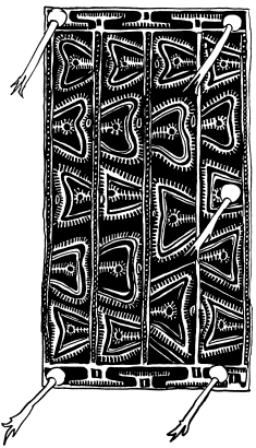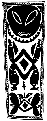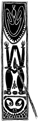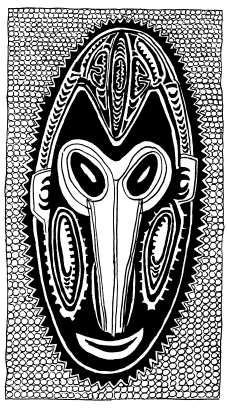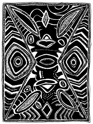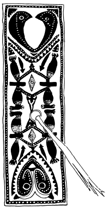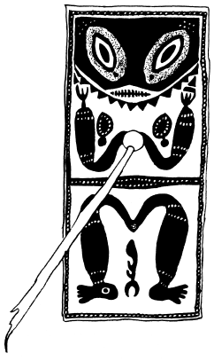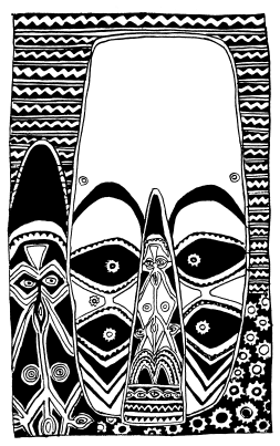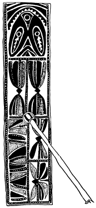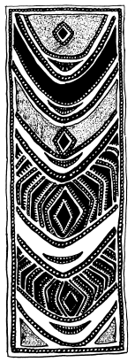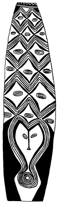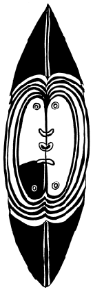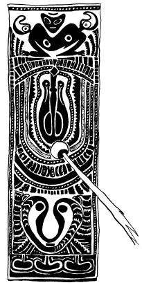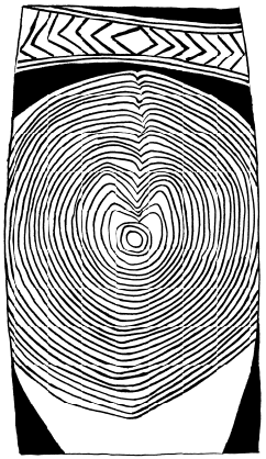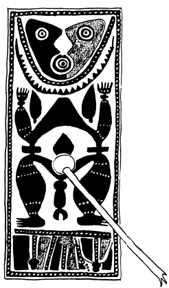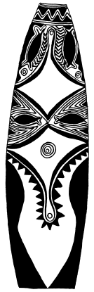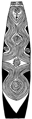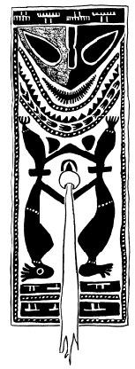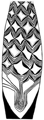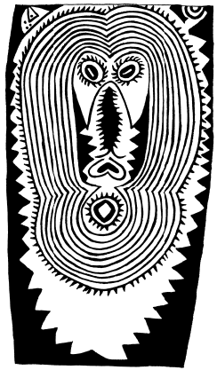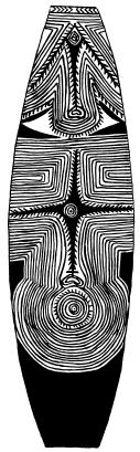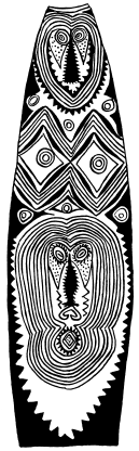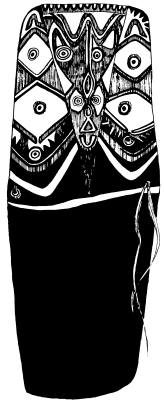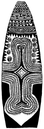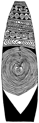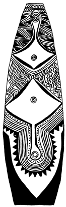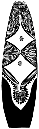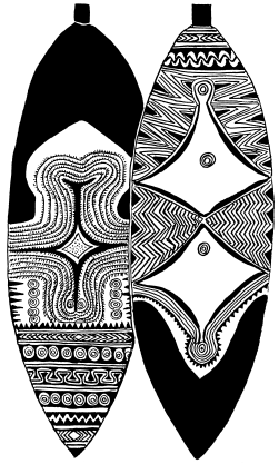 War shield, collection of the University of Technology, Lae, PNG. Collected about 1970. Drawing by Jack Lowson. |