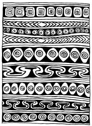 Incised pattern, carved along the side of a Garamut drum in the Bosman village. 1980 field trip. |