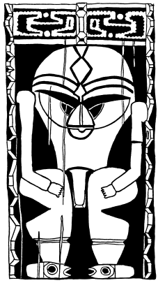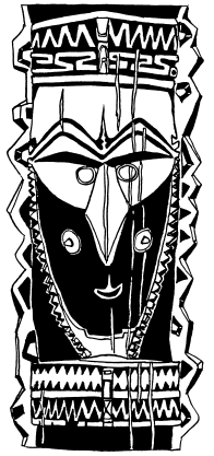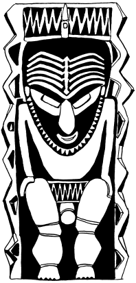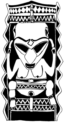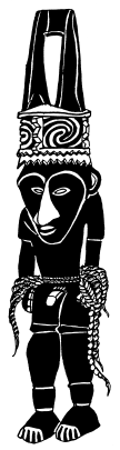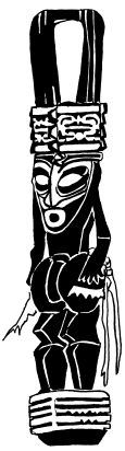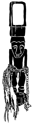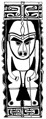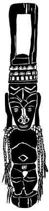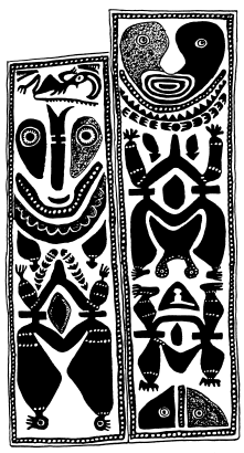 Figures carved on an interior posts of a Bosman village ceremonial haus. Observed on a 1980 field trip. |