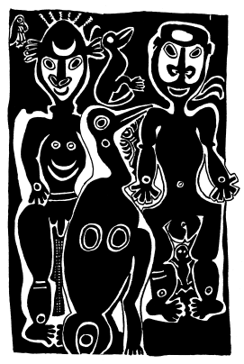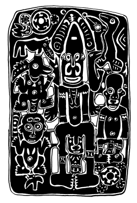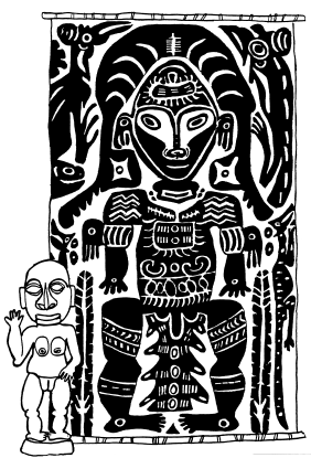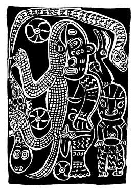 Storyboard from the Kambot area dated mid 1970’s. Mopul and Wain, mythological ancestors of the Kambot village people are depicted along with stylised fauna. |