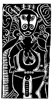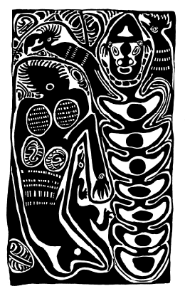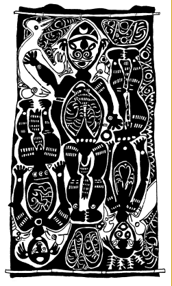 Ruff drawing of a bark painting from the Lower Sepik region as illustrated in Kelm, "Kunst Vom Sepik", Veroffentlichungen des Museum fur Volkerkunde, Berlin,1966, Vol. III, p 290. Sepik expedition of 1912/13. Museum fur Volkerkunde, Berlin, VI 49 382. |