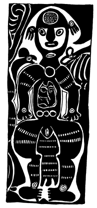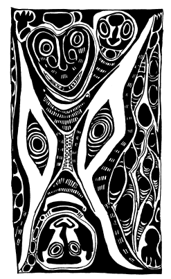 Ruff drawing of a bark painting from the lower Sepik region as illustrated in Kelm, "Kunst Vom Sepik", Veroffentlichungen des Museum fur Volkerkunde, Berlin, 1966, Vol. III, p 283. Sepik expedition of 1912/13. Museum fur Volkerkunde, Berlin, VI 49 472. |