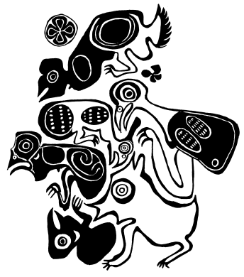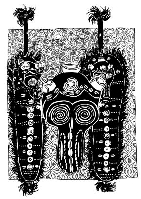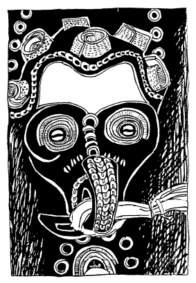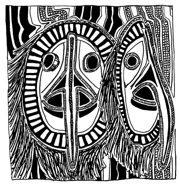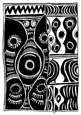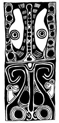 Ruff drawing of a Lower Sepik bark painting motif from Kelm, "Kunst Vom Sepik", Veroffentlichungen des Museum fur Volkerkunde, Berlin,1966, Vol. III, p 292. Sepik Expedition of 1912/13. Museum fur Volkerkunde, Berlin, VI 49 420. |
