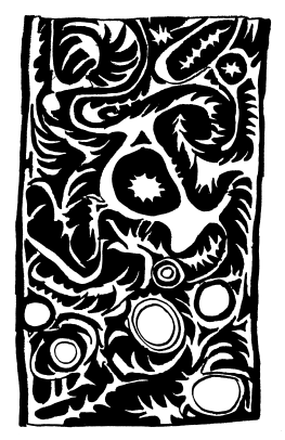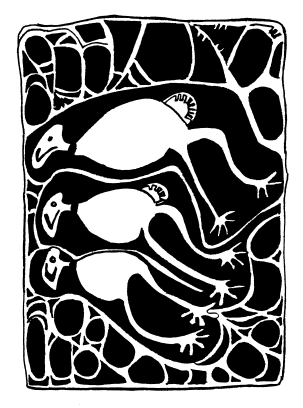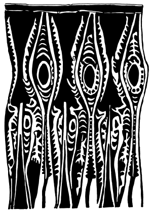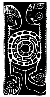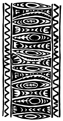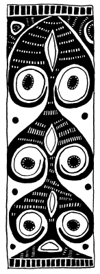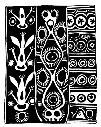 Bark painting by Simon Novep, Kambot village, 1974. Ruff drawing from a photograph by Helen Dennett (#11A, row 6, Dennett sheet 3A, PNG Architectural Heritage Centre). |