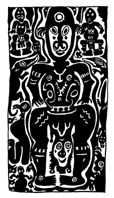 Kambot bark painting from Kambrambo village. Ruff drawing from Guiart, J - "Arts of the South Pacific", Braziller, New York, 1963, p 213, #180. Collection of the Museum fur Volkerkunde, Basel, Switzerland, Vb 4915. Collected by F Speiser in 1930. |