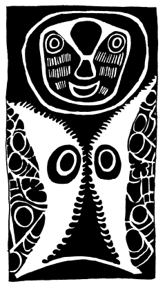 Ruff drawing of a Kambot carving, Museum of Primitive Art (now in the Metropolitan Museum) New York. From Newton, D - New Guinea Art in the Collection of the Museum of Primitive Art, New York Graphic Society, New York, 1967, p 46, #63.26. |