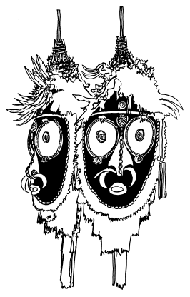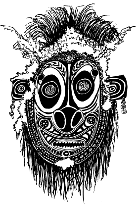 Woven mask from Kouvenmas Village, Blackwater River. Here carvers and artifact makers create a large stock of items for sale to tourist buyers. This mask dates from 1974. |