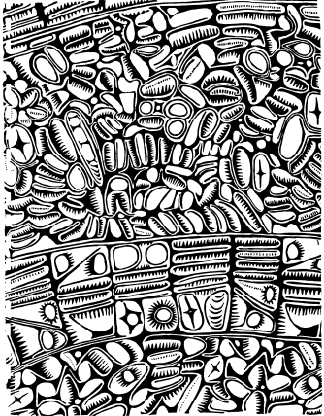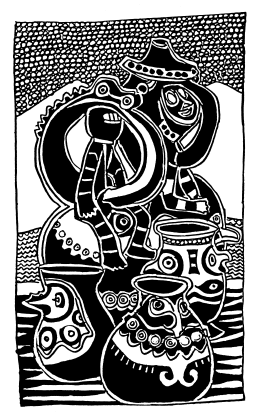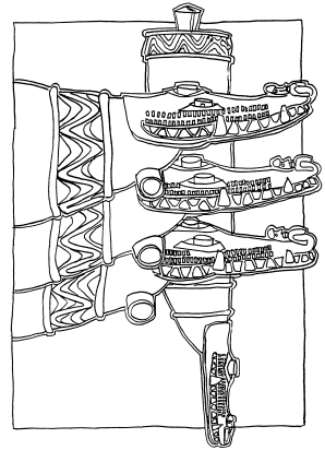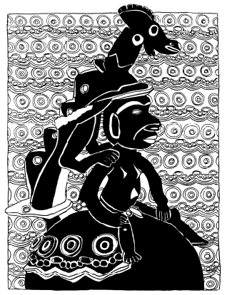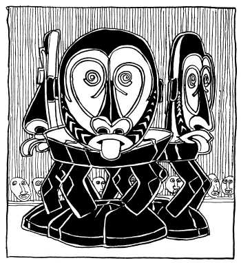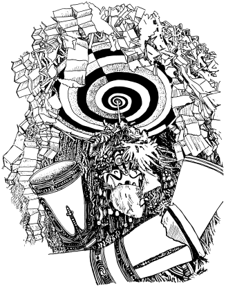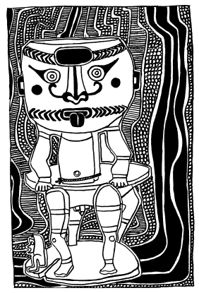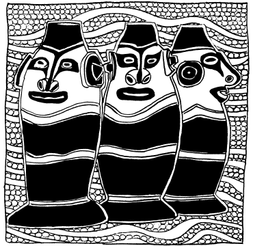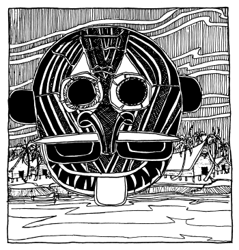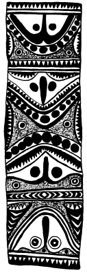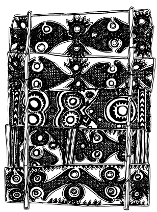Ruff’s impressions of an Avatip Garamut drum, taken from an old photograph. |