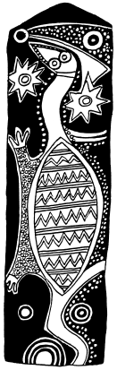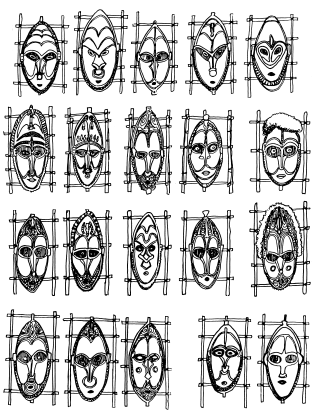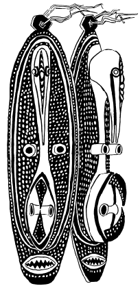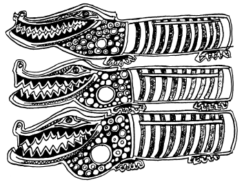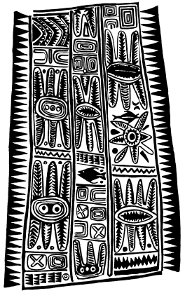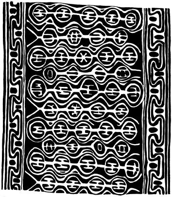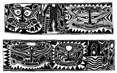 Motifs adapted from a Yentchanmangua bark painting from Gardi, R - "Sepik: Land der Sterbenden Geister", Alfred Schertz Verlag, Berlin/Stuttgart, 1958. |