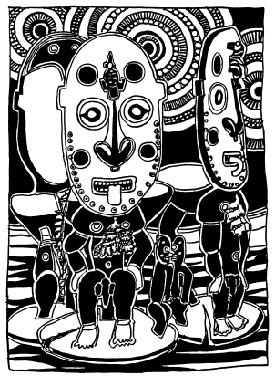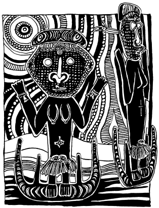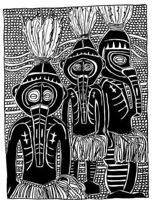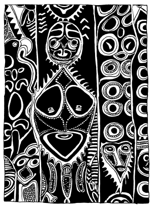 Translated from Pidgin by J. M. Nateleo, of UNITECH, Lae, PNG, 1979. Ruff drawing 1980. |
