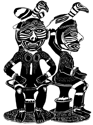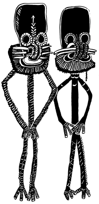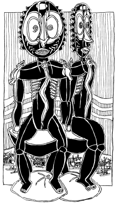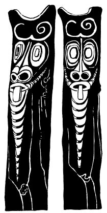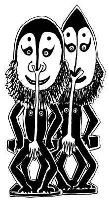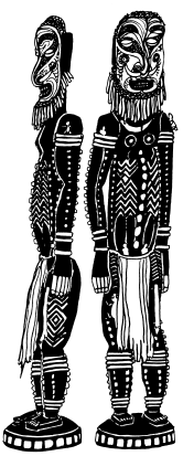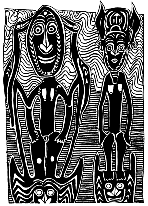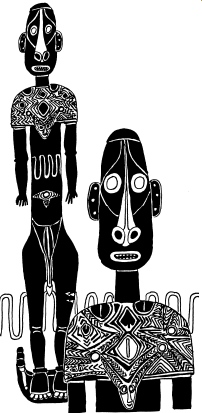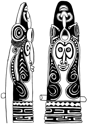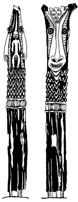 Two Nagwi figures from the Kwoma area. Observed in 1981 at the Melanesian Arts Centre, Lae, PNG. |