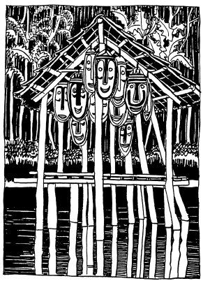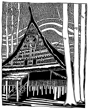 Ruff’s impression of the Nagosap village haus tambaran, newly built in 1975. |