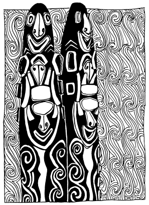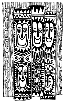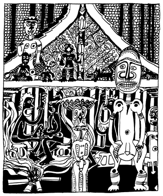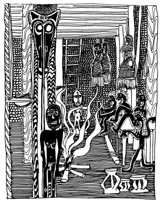 Ruff impressions of the Bangwis village haus tambaran Waypanal in the Waskuk area. |