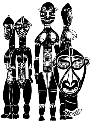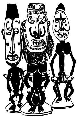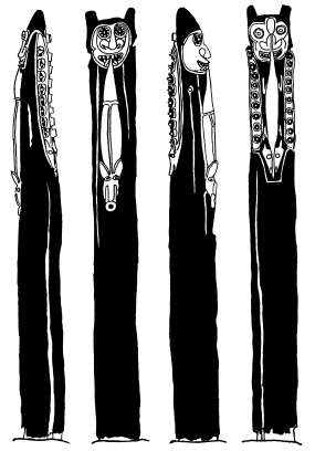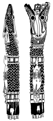 Impressions of typical Iatmul support posts for haus tambaran, 1975. |