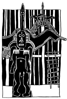 Wicker Tumbuna observed in the upper floor of the Yentchan village haus tambaran Nyang’garambi in 1977. |
