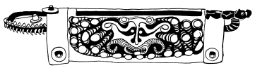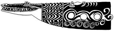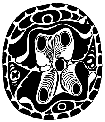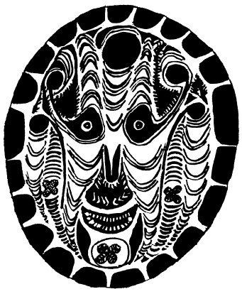 Drawing taken from a rubbing of a tortoise shell arm band, Darapap village. In Numarum cult haus, the shell was the base for a figure nambed Agogo, brought by the ancestors from their first settlement at Bok, in the Murik area, about 180 years ago. The arm band was originally from Boem Island people. Craig, B - "Report for the Papua New Guinea National Museum and Art Gallery, of a Field Trip to the Sepik, Oct 19 - Nov 29, 1981", 1981, pp 153-154. |