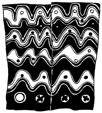Abstract motif from a wooden bowl, made as a replica of a Koiwat pot, Timbunke village, 1978. |