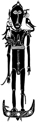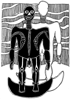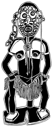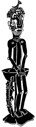 A western Sawos ancestor figure. Drawn from Newton, D - "New Guinea Art in the Collection of the Museum of Primitive Art", New York Graphic Society, New York,1967, #51 (#59.202). Collection of the Museum of Primitive Art, New York (now in the Metropolitan Museum). |
