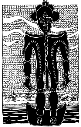 A large standing figure typical of those attached to central support posts of a haus tambaran. Marap village, 1974. Private collection, USA. |