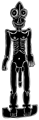 Mbwatnggowi figure from the Yentchan village haus tambaran Nyang’garambi, representing a clan ancestral spirit. Bateson, in 1932, indicated that such figures are, "Vaguely associated with fertility". Bateman, G - "Naven", Cambridge, 1936 (Stanford University Press Reprint, Palo Alto, 1958), p 309. |