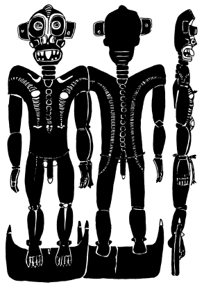 Three views of a Waskuk village Yina figure, observed in the Village Arts sales outlet of the National Cultural Council of PNG in 1974. |