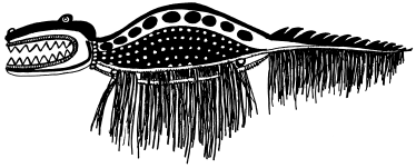 Crocodile constructed of fibre at the Timbunke village haus tambaran in 1978. The figure is named Kabalum, and is owned by Jori of the Kinjin clan. The figure is stored in the rafters at the rear of the house. Its use is similar to that of one seen in Yetchan, where the lower jaw is hinged to move as men bearing the head-dress dance to Kundu music - giving the impression that the creature is “devouring” it prey. Craig, B - "Report for the Papua New Guinea National Museum and Art Gallery, of a Field Trip to the Sepik, Oct 19 - Nov 29, 1981", 1981, p 31 (#37). |